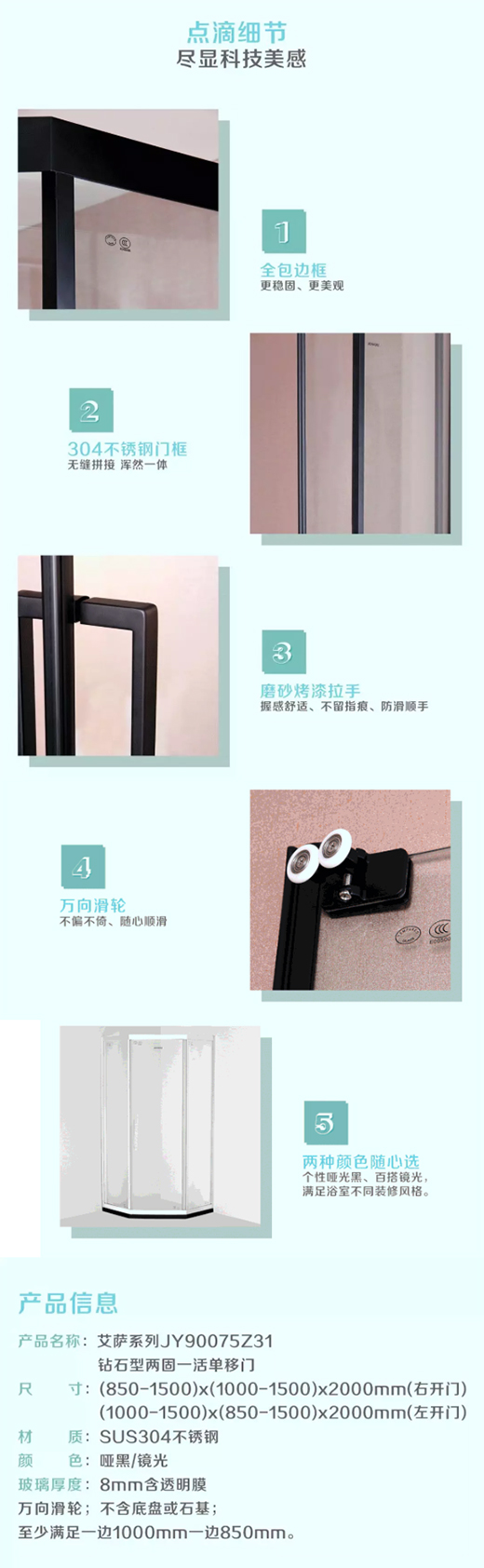 中宇獨(dú)創(chuàng)專利黑科技--“隱身”折疊內(nèi)推門淋浴房,向極致的空間尺度發(fā)起挑戰(zhàn)。設(shè)計(jì)師利用力學(xué)與美學(xué)的原理,摒棄了傳統(tǒng)淋浴房?jī)?nèi)外開門的設(shè)計(jì),以向內(nèi)隱藏式折疊啟閉門的創(chuàng)新技術(shù),讓空間無(wú)限延伸,對(duì)小戶型衛(wèi)生間相當(dāng)友好。