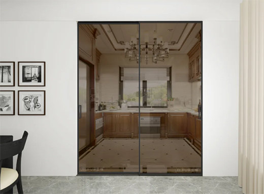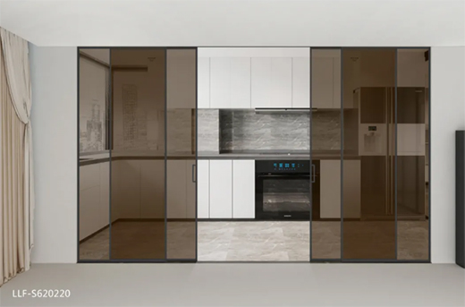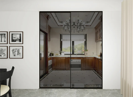 樂立福極簡移門,分雙移門系列、聯(lián)動(dòng)門系列、平開門系列,適合于廚房、客廳、書房、衣帽間、衣柜、衛(wèi)生間、辦公區(qū)域等場景。雙移門系列可做隱蔽式單移門(或美式谷倉門)、一固一活、雙門互移、兩固一活、兩固兩活、包框超大固玻(客廳玄關(guān))等。聯(lián)動(dòng)門可做一固兩活、兩固四活等產(chǎn)品。平開系列可做衛(wèi)生間單門、一固一活平開門、兩固一活平開門等產(chǎn)品。本章重點(diǎn)分享樂立福極簡移門應(yīng)用在廚房與客廳的效果。