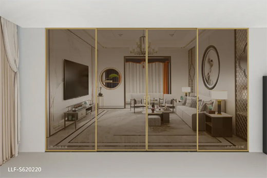 S620020極簡風(fēng)格客廳--拉絲香檳金封油+茶玻+雙包門套