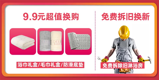 害怕自己手速拼不贏,沒事!!9.9元即可換購衛(wèi)浴豪禮。舊房裝修的寶寶,還有特別福利~免費拆舊換新!簡直不要太驚喜~
