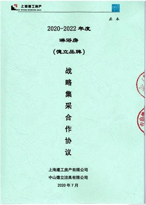 2020年,德立淋浴房與上海建工房產(chǎn)簽訂了2020—2022年度戰(zhàn)略合作協(xié)議,正式達(dá)成戰(zhàn)略合作關(guān)系。