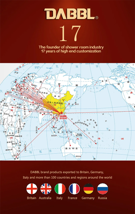 Dabbl brand has a global perspective and a comprehensive layout: in the domestic market, implement the market strategy of "international quality, dream back to China". At the same time, deepen strategic cooperation on a global scale, adhere to the quality and win-win situation, and rely on the world-class product of Canton Fair The trading platform enhances the influence of Dabbl brand in the international shower enclsoure industry, and is determined to let consumers and friends around the world enjoy a quality shower life.