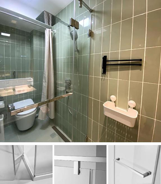 另外,僅2cm左右邊框?qū)挾葮O窄,放大了空間視覺效果,使原本狹窄的衛(wèi)生間層次感十足,通過嵌入內(nèi)置型材的方式,讓支撐桿加厚至2.5mm以上,保證了足夠的牢固,有效保證了門框強(qiáng)度,結(jié)構(gòu)更為堅固耐用。