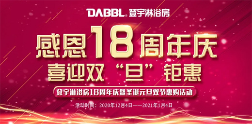 感恩18周年慶,喜迎雙“旦”鉅惠,“登宇淋浴房18周年慶暨圣誕元旦雙節(jié)惠購(gòu)活動(dòng)”現(xiàn)已火熱進(jìn)行中,2020.12.4-2021.1.4,凡活動(dòng)期間參與活動(dòng)均有意想不到的驚喜!更多活動(dòng)詳情可到店咨詢,登宇淋浴房全國(guó)各終端門店期待您的到來(lái)!