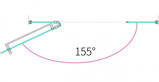 由于該衛(wèi)生間戶型較小,因此活動空間也有限,但SA2的廣角合頁可以實現155°大角度開門,開門角度比傳統淋浴房提高30%,更大的開門空間,既可以最大化降低門的存在感,又可以最大化提升空間利用率,優(yōu)化使用體驗。