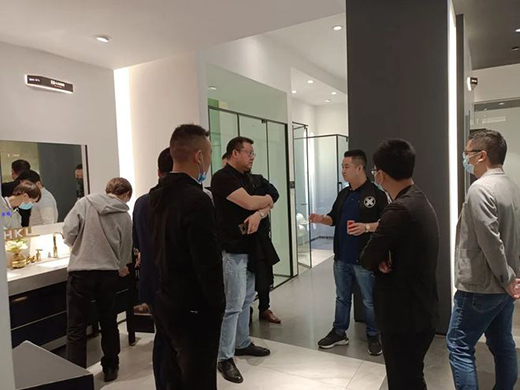 圣莉亞淋浴房團(tuán)隊(duì)首先到達(dá)佛山旗艦店進(jìn)行了參觀了解,心海伽藍(lán)副總裁高恒高總針對(duì)店面設(shè)計(jì),產(chǎn)品研發(fā)布局以及公司管理體系進(jìn)行了詳細(xì)的介紹,張鵬總裁對(duì)伽藍(lán)的店面形象與產(chǎn)品顏值、品質(zhì),細(xì)節(jié)表達(dá)了高度認(rèn)可。