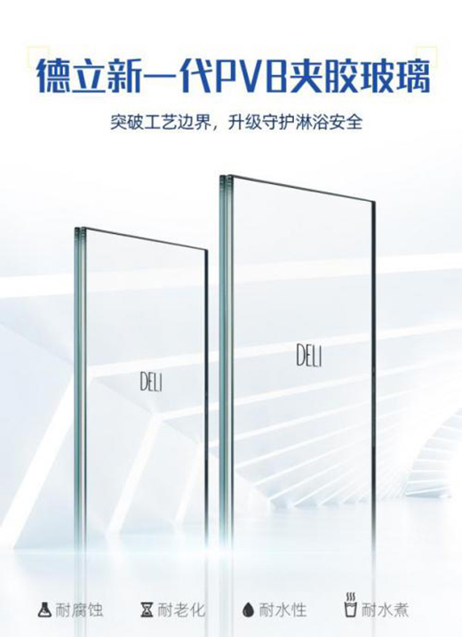 德立新一代PVB夾膠玻璃淋浴房從“原材”“工藝”“安全體系”三個(gè)維度革新淋浴房玻璃安全屬性。