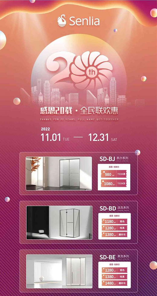 - 圣莉亞淋浴房感恩20載·全民聯(lián)歡惠,勁爆福利