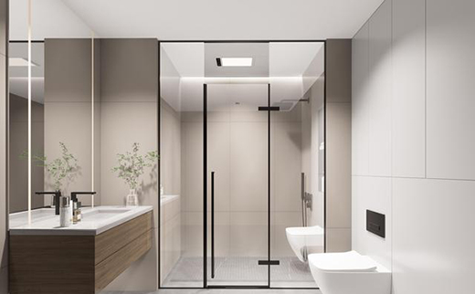 - 極簡(jiǎn)奶油風(fēng)浴室,窄框淋浴房自帶家居大片感
