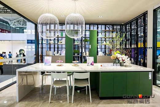 冠珠瓷磚以“探索瓷磚新邊界”為主題,多元化展品搭配,特色豐富體驗(yàn)感十足,如用巖板實(shí)現(xiàn)茶幾、餐桌、櫥柜、衣柜等家具創(chuàng)意定制。展現(xiàn)出厚度薄至3.5mm實(shí)現(xiàn)10-20度的彎曲弧度的纖薄巖板,為設(shè)計(jì)應(yīng)用開(kāi)創(chuàng)新的可能。突破健康生活新次元,展示石墨烯智控發(fā)熱瓷磚,還可以作定制,同時(shí),它還能有效蒸發(fā)室內(nèi)濕氣,防止地滑和室內(nèi)細(xì)菌滋生。