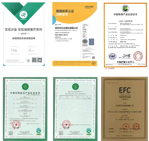 憑借嚴(yán)格的生產(chǎn)質(zhì)檢標(biāo)準(zhǔn),左右沙發(fā)已連續(xù)6年獲得“綠色家具優(yōu)品”認(rèn)證,同時(shí)還通過(guò)了多個(gè)國(guó)家級(jí)專(zhuān)業(yè)認(rèn)證,構(gòu)建起從綠色園區(qū)、綠色工廠和綠色產(chǎn)品三位一體的綠色制造體系,讓您買(mǎi)的放心,用得安心。