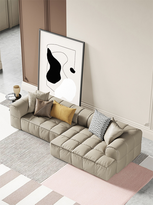 俗話說得好,“客廳的氣質(zhì)看沙發(fā)”。一個(gè)時(shí)尚的沙發(fā),奠定下整個(gè)客廳的基調(diào),側(cè)面反映出主人家的身份和品味。洛品家具這款卡其色格子狀沙發(fā),清新又典雅,將簡約調(diào)性與自然舒適融合地恰當(dāng)好處,給人帶來明朗清新的感覺。不僅好看,而且好用。洛品家具選用優(yōu)質(zhì)皮料,最大限度還原自然韻味,蓬松的填充料被上乘的皮革包裹,展現(xiàn)了前所未有的舒適度。沙發(fā)上再擺放檸檬黃、黑白條紋、赤金色的抱枕,提升沙發(fā)的視覺變化,讓空間更為寧靜有質(zhì)感。