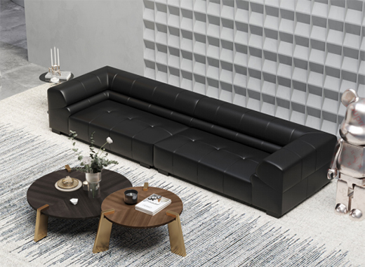洛品有家此款黑色皮革沙發(fā),用最簡單的設計詮釋不簡單的家居美學。長沙發(fā)的整體造型采用一字型,沙發(fā)腳隱藏于主體之間,營造出一種輕微的懸浮感,不僅給視覺“減負”,更提供了包容性極強的空間搭配性。這就是意式簡奢的魅力,看似普通隨性,但其實都經過了精心考量,每一點都是恰到好處。