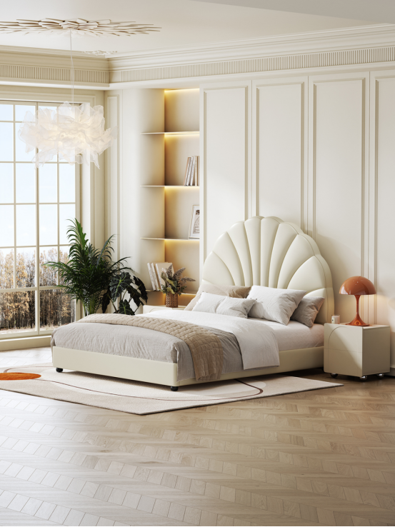 從工藝細(xì)節(jié)到視覺(jué)美感,無(wú)不彰顯著品質(zhì)感。洛品有家這款云慕系列軟體床,軟包床屏設(shè)計(jì)為貝殼形狀,象征人魚(yú)公主的堅(jiān)強(qiáng)、美麗,將浪漫腔調(diào)極致演繹,很適合主臥??钍叫路f大氣,精細(xì)的做工和細(xì)膩的質(zhì)感可以搭配各種裝修風(fēng)格,出彩又不會(huì)過(guò)于夸張。