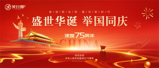 萬里河山披錦繡,千年風雨得今朝。與祖國同生日,跟祖國齊奮進!美升娜家居攜全體員工致敬盛世華誕75周年,祝愿偉大祖國風調(diào)雨順,繁榮昌盛!