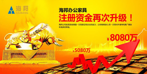 辦公家具行業(yè)特大新聞:中山市海邦家具實(shí)業(yè)有限公司通過(guò)董事會(huì)決定由原來(lái)的注冊(cè)資金5080萬(wàn)元增加到8080萬(wàn)元,在家具行業(yè)中已屬于佼佼者、一直領(lǐng)跑在辦公家具的前沿。