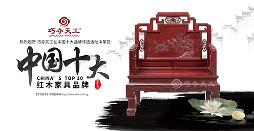 “中國(guó)十大紅木家具品牌”——巧奪天工也。