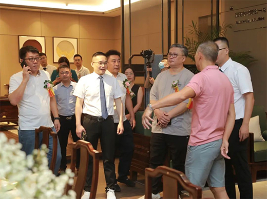 本次開業(yè)活動邀請了中山市紅木家具行業(yè)協(xié)會名譽(yù)會長、紅博城董事長林孟禮,全國工商聯(lián)藝術(shù)紅木家具專業(yè)委員會執(zhí)行會長、中山市紅木古典家具學(xué)會會長、騰訊家居紅木負(fù)責(zé)人、品牌紅木CEO林偉華,中山市紅木家具行業(yè)協(xié)會會長林志洪,榮源集團(tuán)董事兼股東委員會主席王大勇,榮源集團(tuán)董事趙明軍,晟源紅木家具有限公司董事長卜盛斌,閑適紅木董事總經(jīng)理石擁軍以及雅宋紅木董事總經(jīng)理竇琦柳,共同為閑適紅木全新旗艦店剪彩。