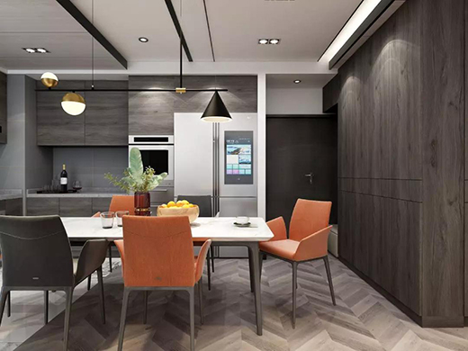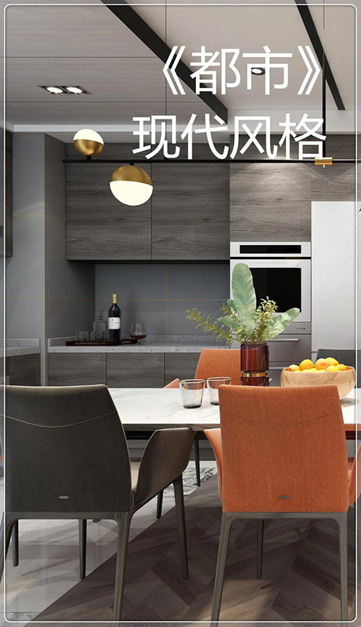 《都市》空間的主要花色為 埃拉橡木(深),中性色調(diào)的木材應(yīng)用讓空間更有質(zhì)感,搭配清淡的色彩和石紋讓整個空間顯得理性,不需要多余繁奢的飾品裝飾,幾幅個性掛畫,中規(guī)中矩的燈飾,就呈現(xiàn)出一種都市人時尚簡約的生活方式。