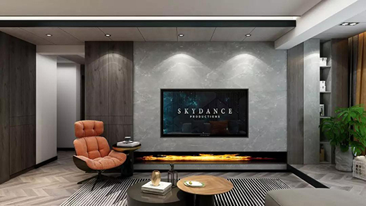 巴哈馬石紋的背景墻配以埃拉橡木流動的紋理,