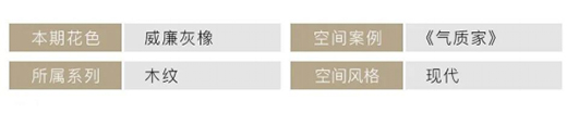 威廉灰橡-《氣質(zhì)家》空間里大量使用木材花色作為背景墻和護(hù)墻,主要花色為威廉灰橡,暖灰調(diào)的木材與大地色的色彩使整個(gè)空間富有高級(jí)感又讓人舒適溫暖,搭配少量石材作為點(diǎn)綴以達(dá)到空間的冷暖平衡。