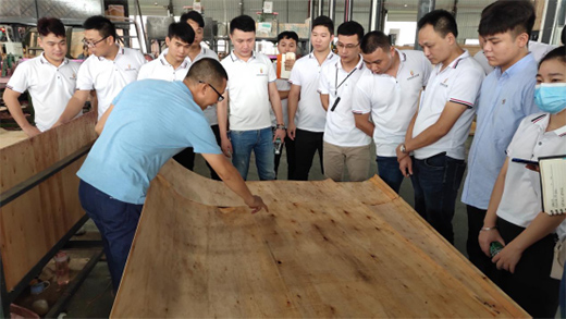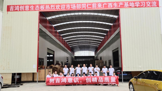 人才是企業(yè)發(fā)展的第一資源!2020年8月16日,深諳人才培養(yǎng)重要性的吉鴻總部,再次組織了一場以各區(qū)市場部員工(以下簡稱學(xué)員)為主角的交流學(xué)習(xí)活動(dòng)。在吉鴻營銷中心兼商學(xué)院負(fù)責(zé)人柯立新以及廣西生產(chǎn)基地曾廠長的帶領(lǐng)下,各位學(xué)員深入廣西生產(chǎn)基地、聚焦產(chǎn)品生產(chǎn)一線,用眼觀摩吉鴻創(chuàng)意生態(tài)板的生產(chǎn)流程,用耳傾聽曾廠長對先進(jìn)設(shè)備及高新技術(shù)的介紹與講解,用腦思考板材產(chǎn)品的環(huán)保、款色、質(zhì)量、工藝等方面的優(yōu)化升級問題,用心牢記產(chǎn)品亮點(diǎn)、賣點(diǎn)等業(yè)務(wù)銷售知識,在整個(gè)學(xué)習(xí)交流的過程中受益匪淺。