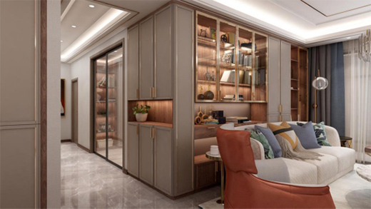 基于這個用戶痛點,福臨板材憑借完善的生產(chǎn)鏈和質(zhì)控管理體系,自主設計出同色配套系統(tǒng),讓用戶的復雜難題變得簡單易行。福臨同色配套平開門產(chǎn)品,追求美于板、示于線的完美組合,并且規(guī)格齊全、圖紋清晰、色澤穩(wěn)定,讓板材飾面的紋理、顏色、光澤度呈現(xiàn)出和諧視感,實現(xiàn)一個完美緊密的定制家具系統(tǒng)。
