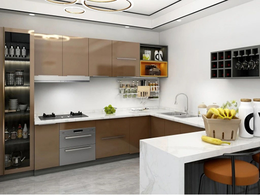 而PET板材,則是近兩年家居圈內(nèi)剛剛興起的新型產(chǎn)品,是PET材料在板材產(chǎn)品上的成功應(yīng)用,使用PET作為板材產(chǎn)品的表面材料,能夠使得板材表面手感細(xì)膩,克服了板材產(chǎn)品在加工和使用過程中由于批次不同而容易產(chǎn)生的色差明顯等缺點(diǎn),產(chǎn)品色彩亮麗、顯色真實(shí)、立體感強(qiáng)、視覺效果完美,更容易滿足簡約輕奢家居風(fēng)格對于板材產(chǎn)品的高要求。且PET板材不同批次也基本上不會有色差、不褪色、不變色,具有耐壓、耐碰、耐高溫、抗腐蝕、耐老化、易清潔等優(yōu)勢,是全屋定制家居極為理想的板材產(chǎn)品。