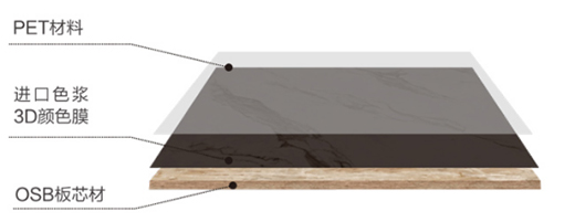 PET柜門板表層材料由兩層構(gòu)成,上層采用PET材料(表面透明部分),下層為進(jìn)口色漿制作而成的3D顏色膜材料,基材為經(jīng)過(guò)國(guó)家環(huán)保認(rèn)證的高環(huán)保型OSB板。強(qiáng)度及硬度高,摩擦系數(shù)穩(wěn)定。