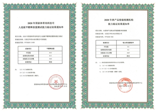 順利通過相關項目檢測能力驗證充分證明了華杰木業(yè)研發(fā)中心已達到國家林科院檢測中心技術水平,具有了完備的、國家認可的自我檢測能力,可為消費者提供更加環(huán)保高質的產品、更加完善和值得信賴的服務。