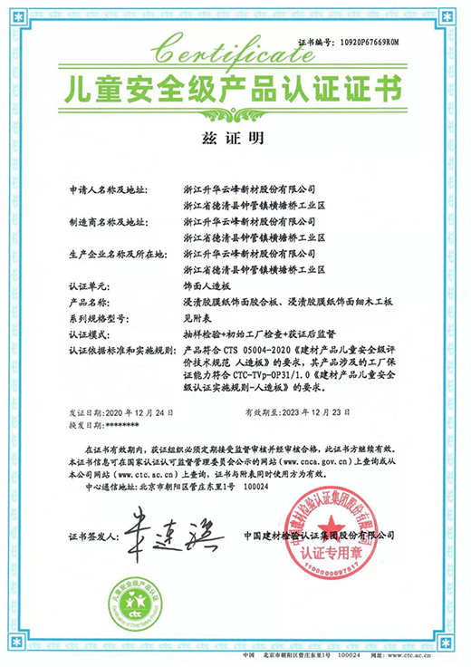 |兒童安全級(jí)產(chǎn)品認(rèn)證證書(shū)|