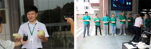 吃著董事長(zhǎng)家鄉(xiāng)的瓜果,大家一個(gè)勁地稱贊“好瓜!好甜!”這份甜蜜,不僅“甜”在大家的嘴里,更是“甜”在心里。