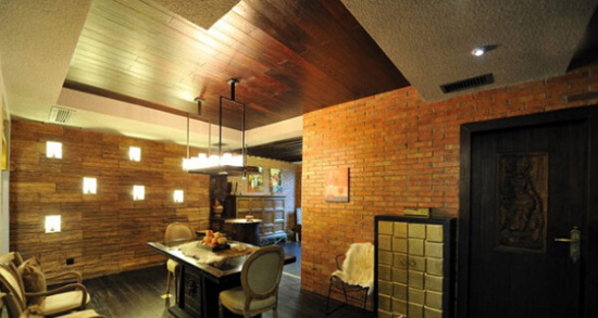 在二人世界里,點(diǎn)亮浪漫而小資的餐桌吊燈,相對(duì)而坐進(jìn)餐想想是不是都非常浪漫?在這個(gè)餐廳木地板裝修效果圖中,將餐廳設(shè)計(jì)得時(shí)尚而浪漫,采用自然而質(zhì)樸的墻面的同時(shí),在墻面上安裝幾個(gè)壁燈,在餐桌上放設(shè)計(jì)1個(gè)吊燈,燈光一亮,整個(gè)空間爛漫而溫馨,黑色木地板的鋪設(shè)則為空間增添了時(shí)尚與個(gè)性。