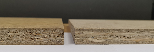 千年舟ENF級PET板在健康基板基礎(chǔ)上進行壓貼處理,芯層刨片和長薄片刨片呈縱向排列,芯層刨片呈橫向排列,縱橫交錯排列,極大程度消除了木材內(nèi)應力對加工的影響,定向鋪裝無接頭、無縫隙、無裂痕,整體均勻性好,內(nèi)部結(jié)合強度極高。