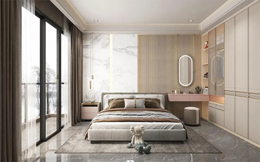 衣柜與梳妝柜結(jié)合為一體的定制系統(tǒng)中,以治愈的木色搭配內(nèi)銑凹槽的門(mén)型,梳妝臺(tái)與衣柜的結(jié)合,不僅有效利用空間,還能讓空間更具整體性。清新衣柜與梳妝臺(tái)搭配,淡雅清爽的顏色讓人印象深刻,也是整個(gè)房間的亮點(diǎn)所在。
