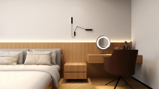 床頭柜、梳妝臺與床頭銜接一體