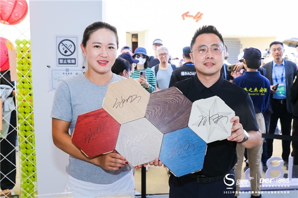 現(xiàn)場(chǎng),朱琳也表示十分認(rèn)同Der·1863品牌的匠心理念,并表達(dá)出對(duì)展示臺(tái)上幾何拼花六角地板的強(qiáng)烈興趣。在董瑩先生的指導(dǎo)下,朱琳親自體驗(yàn)了拼花地板自由隨機(jī)拼接的樂(lè)趣,她笑稱“十分有意思,體會(huì)到了換一種職業(yè)的樂(lè)趣!”