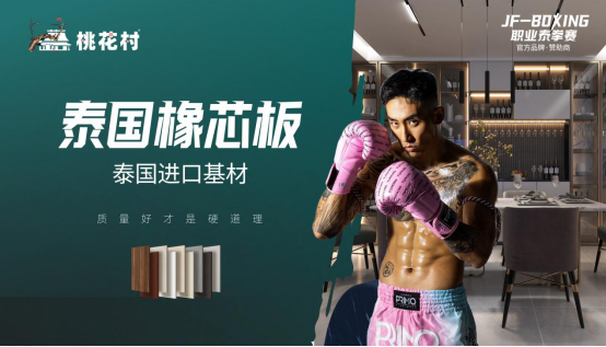 桃花村生態(tài)板與泰拳的跨界合作,不僅是一次品牌營銷的創(chuàng)新嘗試,更是一次對品質(zhì)與力量的共同追求。未來,桃花村將繼續(xù)秉承“用品質(zhì),K.O一切”的產(chǎn)品理念,作為JF-BOXING職業(yè)泰拳賽的官方品牌贊助商,將泰拳的力量與泰國進(jìn)口橡膠木的優(yōu)質(zhì)特性相融合,為消費(fèi)者帶來更多優(yōu)質(zhì)、環(huán)保、堅固的生態(tài)板產(chǎn)品,讓每一個家庭都能享受到高端的專屬生活體驗。