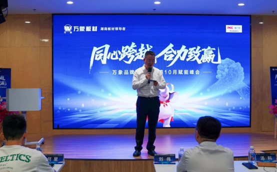 湖南萬象裝飾材料有限公司、湖南旺德府建材科技有限公司總經(jīng)理湯科先生,以“模式賦能產(chǎn)品價(jià)值”為核心展開分享。他不僅系統(tǒng)闡述了萬象品牌“直連客戶、嚴(yán)控品質(zhì)、高效服務(wù)”的三大優(yōu)勢,更通過深度解讀圓弧產(chǎn)品、金鉆龍骨、石膏板2代三大新產(chǎn)品,讓核心加盟商直觀感受到品牌強(qiáng)勁的產(chǎn)品力。同時(shí),他進(jìn)一步明確了集團(tuán)“高端板材+高端輔材+高端衣柜定制”的戰(zhàn)略定位,為品牌發(fā)展方向錨定核心。