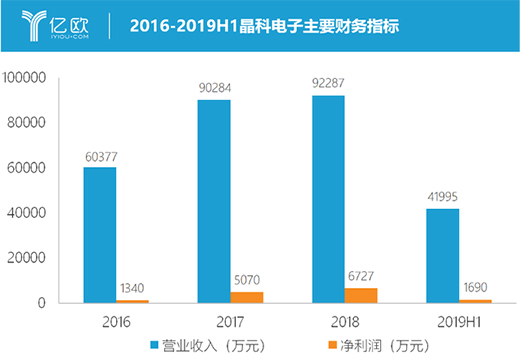 2016-2019H1晶科電子主要財務(wù)指標(biāo)