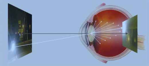 對于眩光的定義,維基百科給出的解釋是:眩光即刺眼,是因視野內(nèi)的亮度大幅超過眼睛所適應,會導致煩擾、不舒服或視力受損。簡單來說,在視野中某—局部地方出現(xiàn)過高的亮度或前后發(fā)生過大的亮度變化,就容易產(chǎn)生眩光。