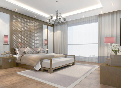 現(xiàn)代歐式風格設(shè)計從簡單到繁雜、從整體到局部,精雕細琢,鑲花刻金都給人一絲不茍的印象。一方面保留了材質(zhì)、色彩的大致風格,讓人感受盜傳統(tǒng)的歷史痕跡與渾厚的文化底蘊,同時又摒棄了過于復雜的肌理和裝飾,簡化了線條。深棕色拼花地板奢華大氣,整張臥室地板圖片彰顯出主人高端的生活品質(zhì)。