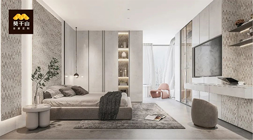 春天的美妙之處,在于大自然的生機(jī)勃勃,也在于卸下疲憊的舒享空間。臥室內(nèi)墻柜一體化設(shè)計(jì),墻板、柜內(nèi)、層板具有圓點(diǎn)狀吊燈,瞬間讓整個(gè)空間變得溫暖了起來(lái),帶給居者舒心、愉悅的享受。