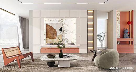 空間搭配橙色家居單品,又為整體注入活力與生機,營造出獨具有中式意趣的的萬圣氛圍。