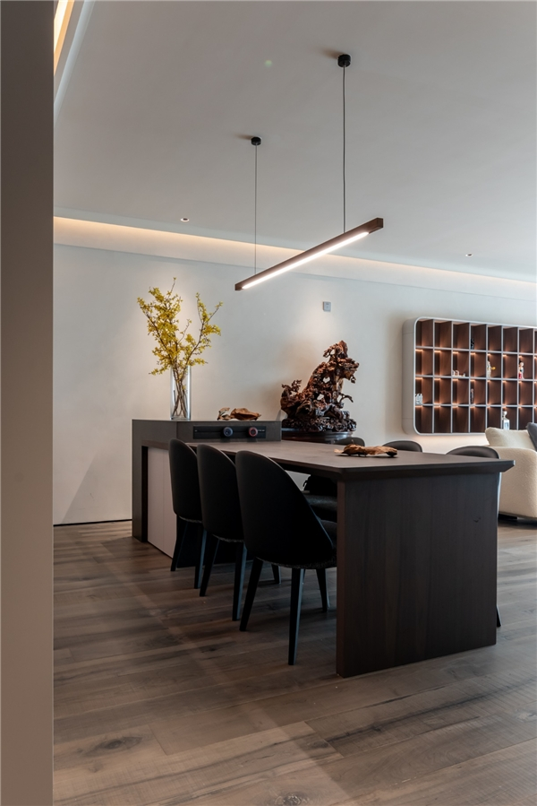 流光雅韻,始于簡,止于心。內(nèi)斂、中和的氛圍之中,主人身與神調(diào)和平衡,感受到空間記憶的流淌與延續(xù),實現(xiàn)對生活場景的更深層藝術(shù)化構(gòu)想。