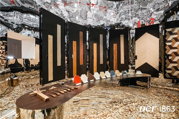在全新展廳面貌露出的同時(shí),Der·1863在本次地材展現(xiàn)場也正式推出了「私人訂制」模式,旨在從指定訂制、選擇訂制、共創(chuàng)訂制三個(gè)階段,融合多元方案,打造消費(fèi)者心中獨(dú)一無二的產(chǎn)品。