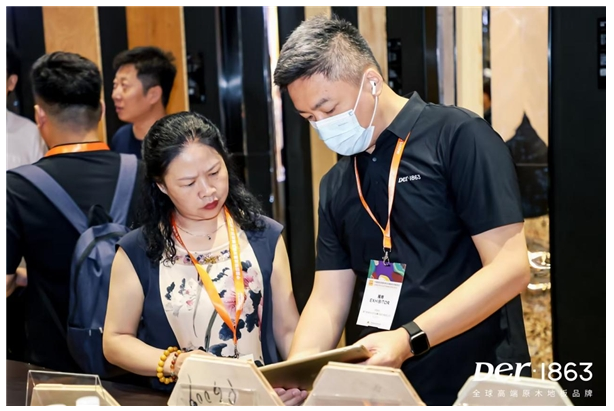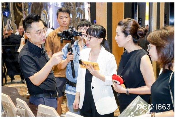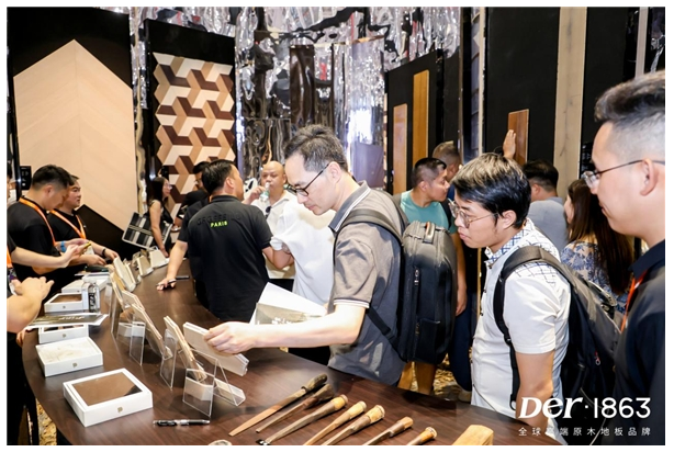 全國銷區(qū)經(jīng)理、業(yè)務(wù)負(fù)責(zé)人使用智能化工具為觀眾講解品牌知識與產(chǎn)品優(yōu)勢,并通過“觀察”、“觸摸”、“嗅聞”、“聆聽”等方式,引導(dǎo)觀眾全身心投入Der·1863臻品的體驗(yàn)之旅。