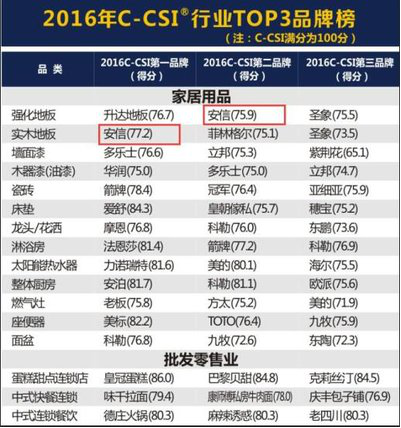 品牌的本質(zhì)是消費者體驗和正向口碑,而消費者升級也依托于這一點。年初在北京發(fā)布的第二屆中國顧客滿意指數(shù)(China Consumer Satisfaction Index,簡稱C-CSI),安信實木地板榮獲地板行業(yè)的消費者滿意度第一名,安信強化復(fù)合地板列第二位。對于任何企業(yè)而言,客戶的滿意都是最佳的褒獎,除此之外,安信地板還多次入選中國品牌價值五百強。