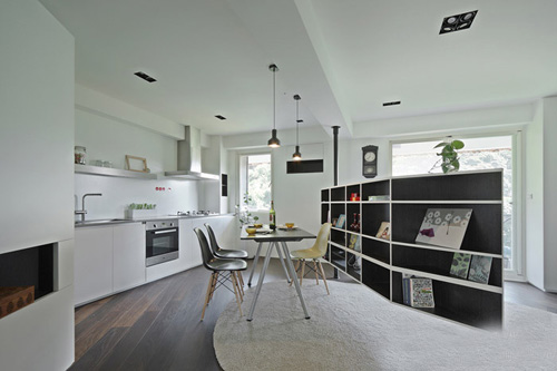 如果用白色墻壁和深茶色地板搭配,這會使地板顯得很暗。但是如果將墻壁換成同為茶色系的其他顏色,墻壁和地板的顏色就比較容易接近,空間也會顯得大。