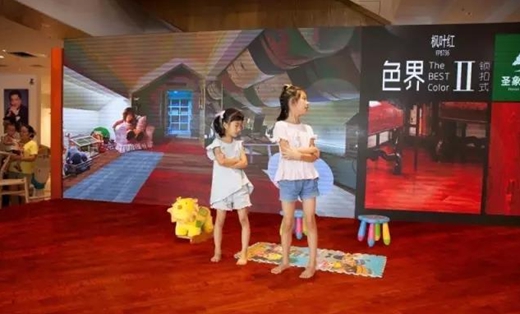 發(fā)布會活動現(xiàn)場,圣象以別具一格的舞臺劇形式將圣象艾斯本“色界Ⅱ”系列地板情景化的呈現(xiàn)給觀眾——“太太們的健身房”、“孩子們的親子樂園”、“一個小目標”、“總裁的雅致書屋”、“年輕人的轟趴排隊”,五部簡短的舞臺劇向大家展示了“色界Ⅱ”6款新品的獨特之處,并在每一幕之后的大咖論壇中,木地板的社交功能得到著重的關(guān)注。